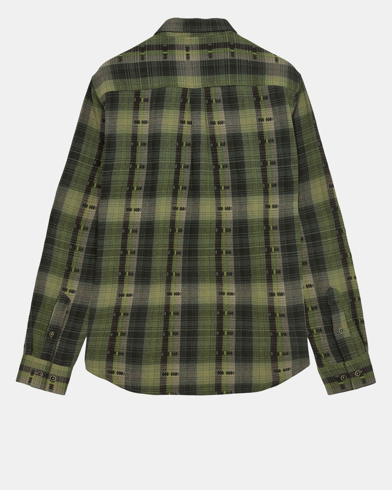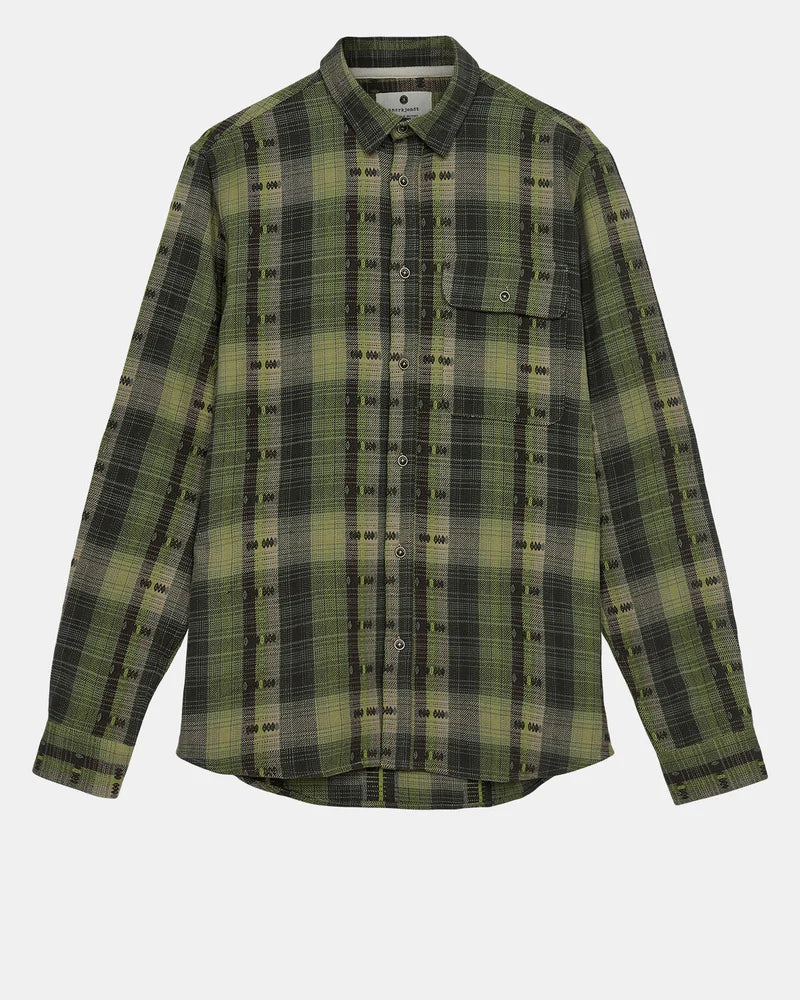 Esta camisa combina el encanto clásico del tejido a cuadros con un diseño modernizado que resalta por su cuidada textura y su paleta de verdes naturales.