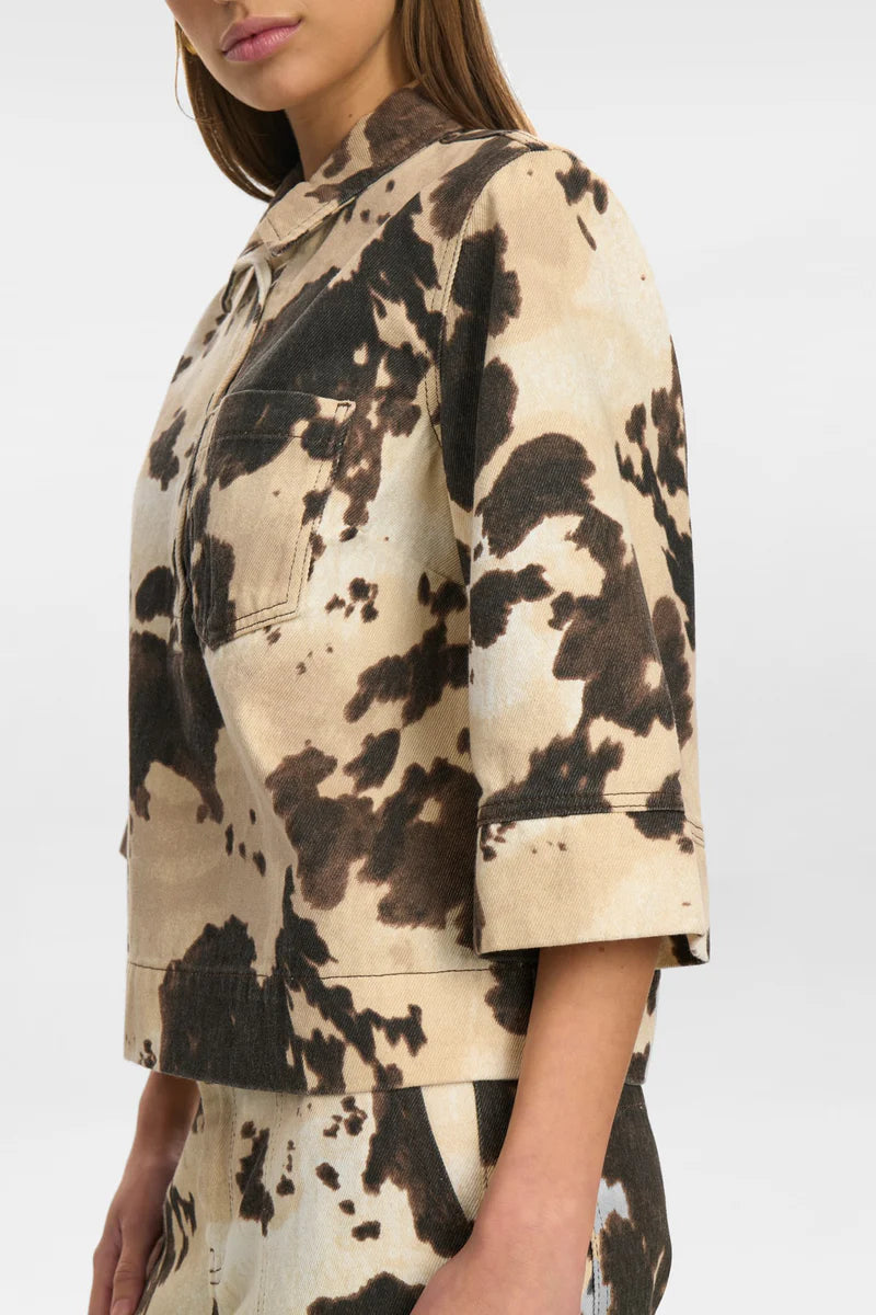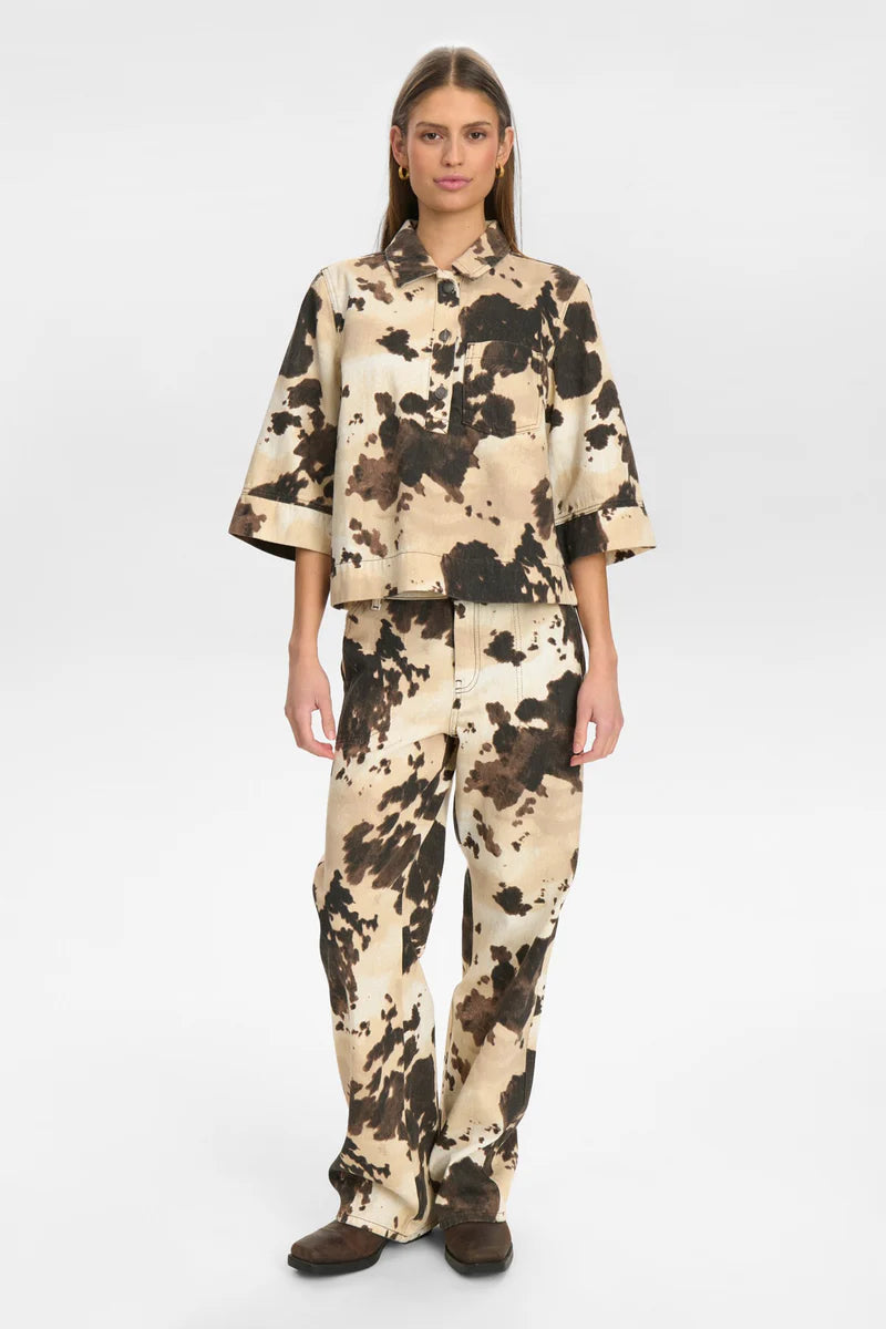 Una prenda que aporta carácter sin esfuerzo. Esta camisa de estampado animal reinterpreta el print vaquero-manchado con un enfoque moderno y urbano.