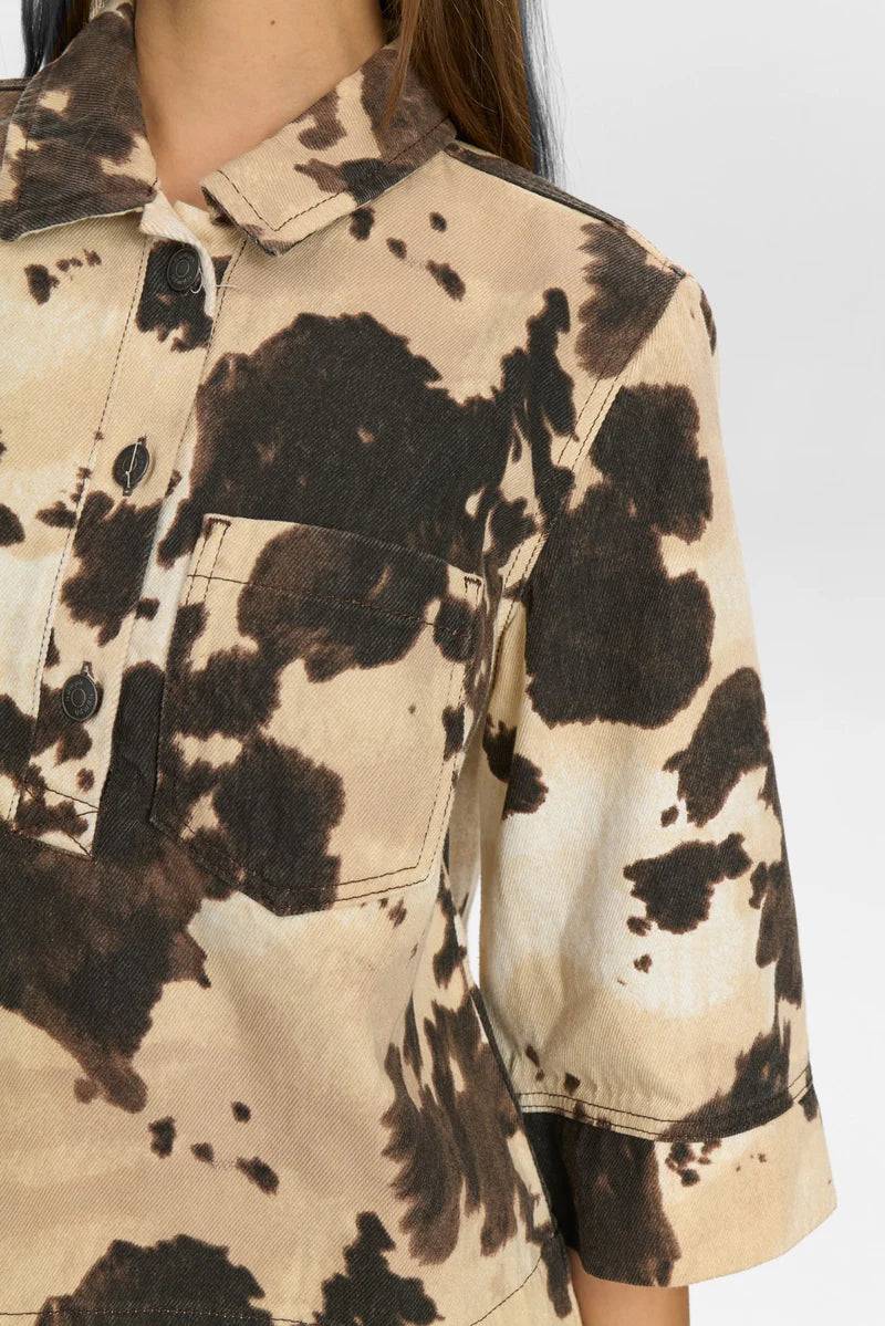 Camisa de corte recto confeccionada en tejido de algodón con estampado animal en tonos tierra.