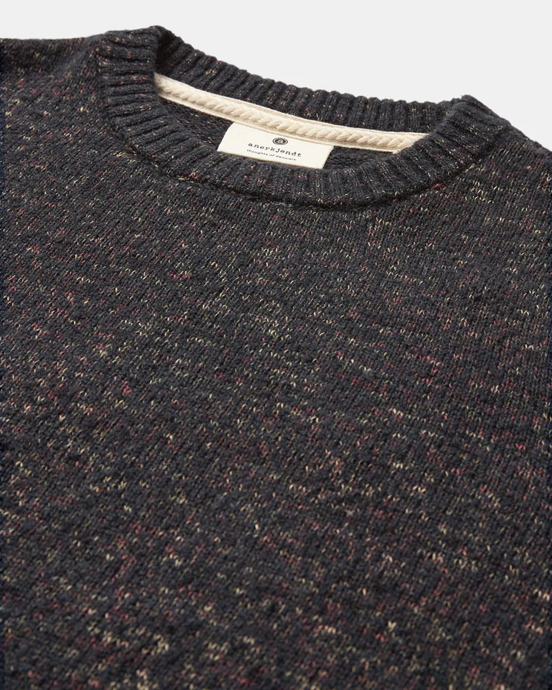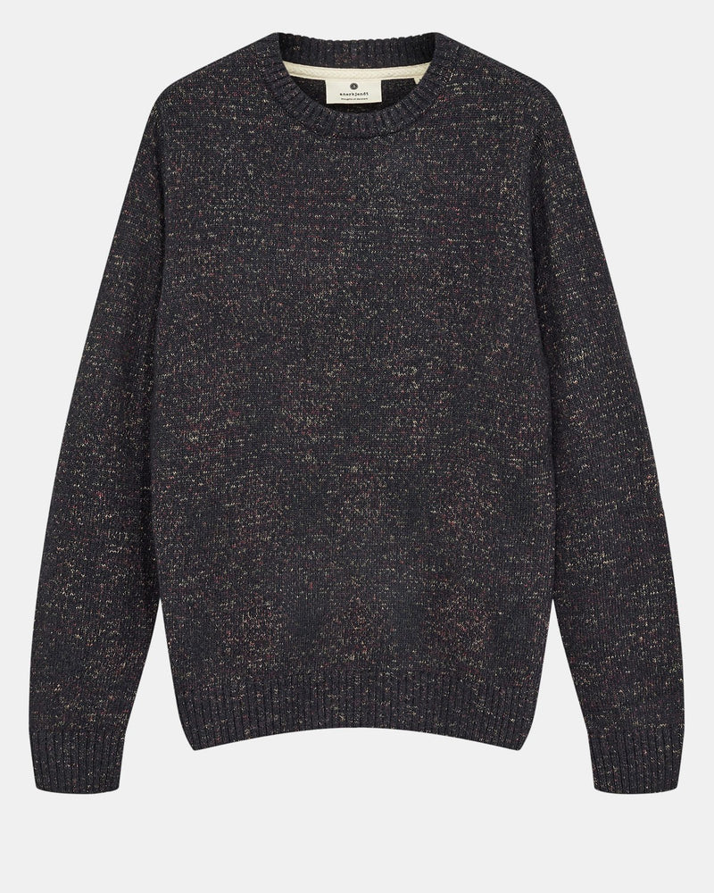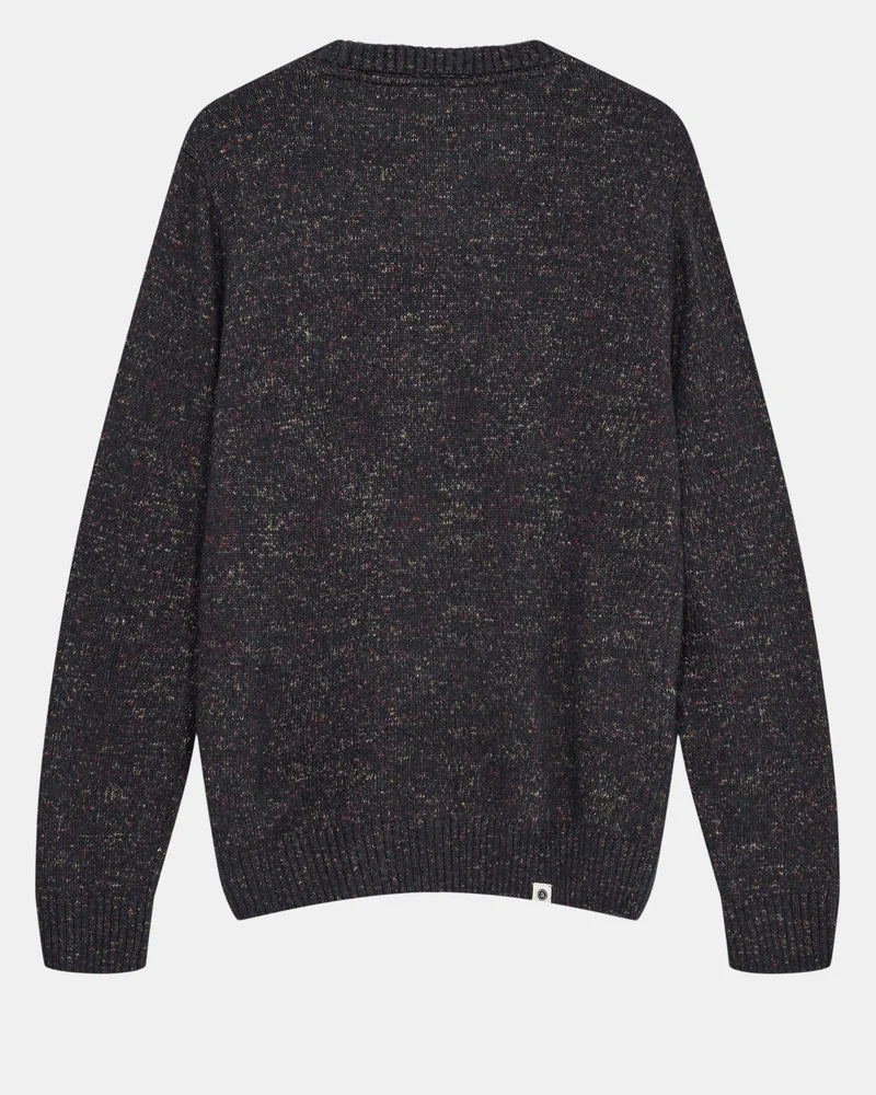 Jersey de punto con textura jaspeada en tonos oscuros. Un básico elevado que combina la calidez del punto tradicional con la sofisticación de los matices contemporáneos.
