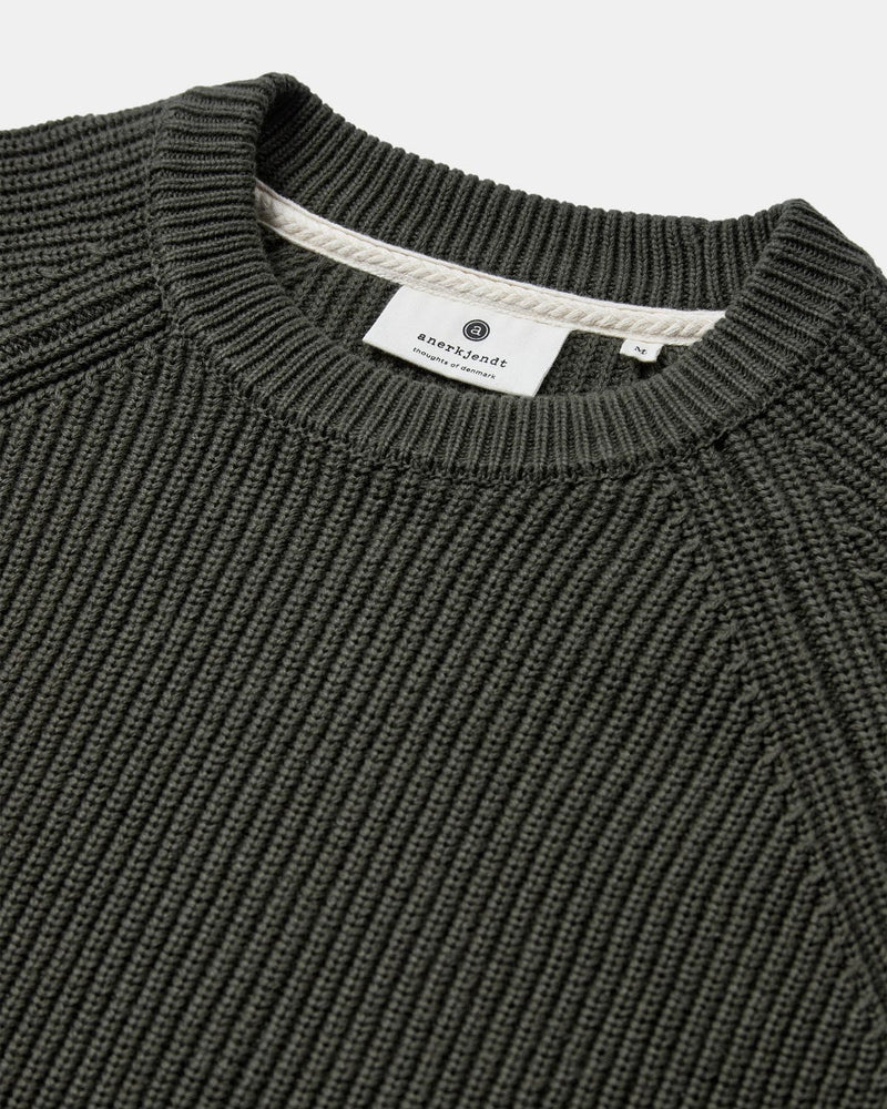 Su diseño de punto grueso y textura uniforme transmite calidez y sobriedad, mientras su tono verde profundo aporta una sofisticación natural que se integra con facilidad en un guardarropa moderno.