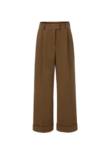 El diseño de tiro alto define la cintura y crea una línea elongada, mientras que las pinzas delanteras añaden un detalle sartorial clave, asegurando una caída impecable y un volumen controlado.