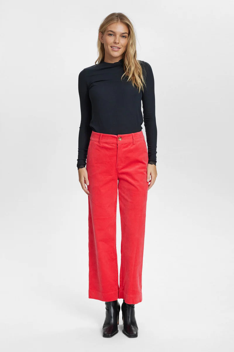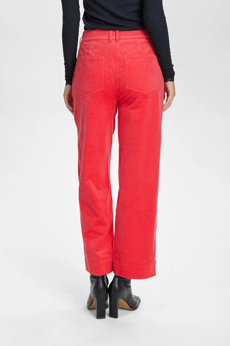 Este pantalón de pana en color rojo vibrante aporta un toque audaz y contemporáneo a tu armario.