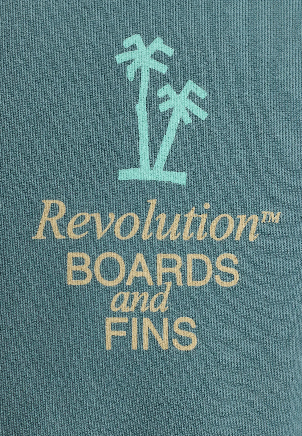 Sudadera de corte recto en tono azul verdoso con cuello redondo y mangas largas.