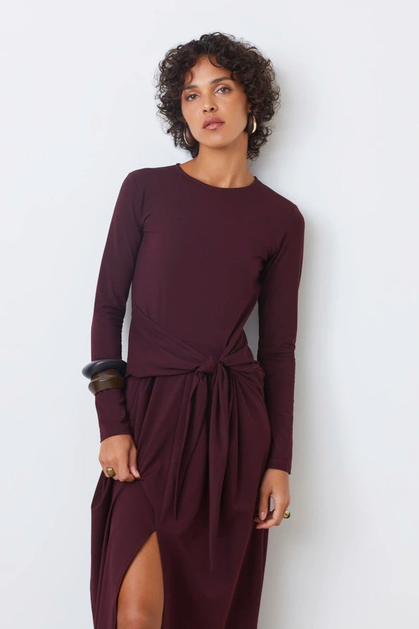 Su color burdeos profundo lo convierte en una prenda ideal tanto para ocasiones especiales como para looks de día con un aire refinado.